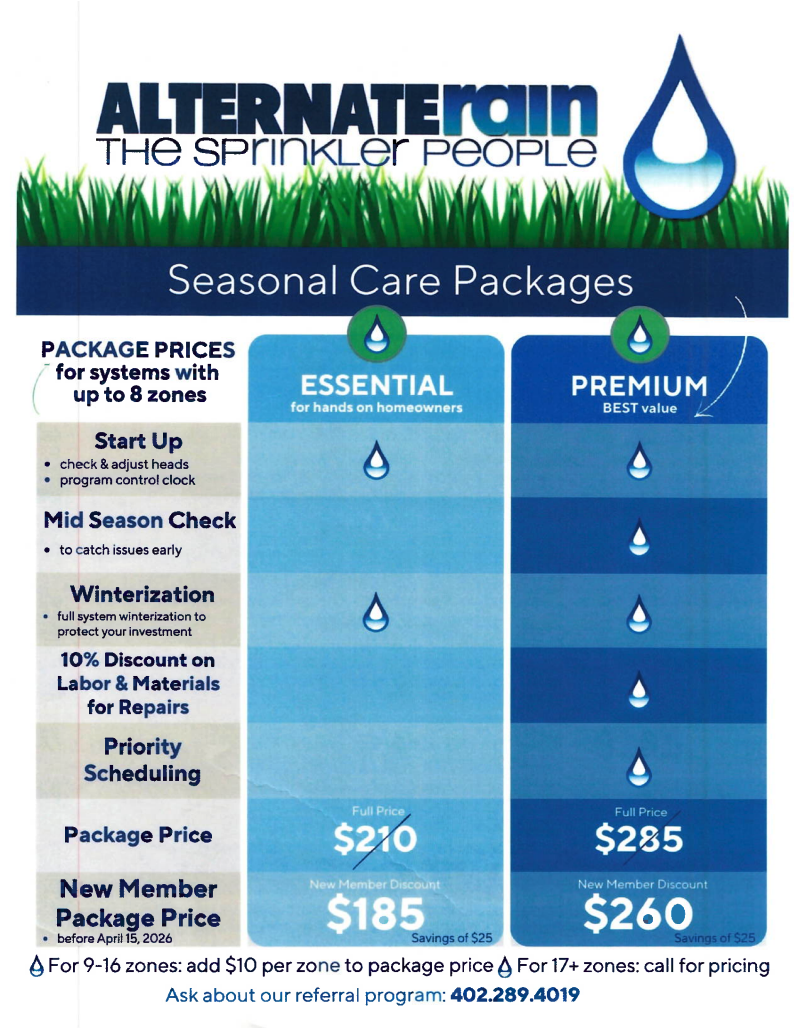At Alternate Rain, we believe your irrigation system is an investment in your home’s landscape. To help you protect that investment and ensure your yard looks its best, we offer comprehensive Seasonal Care Packages designed to take the guesswork out of maintenance